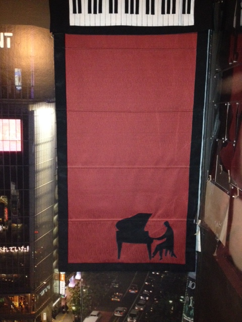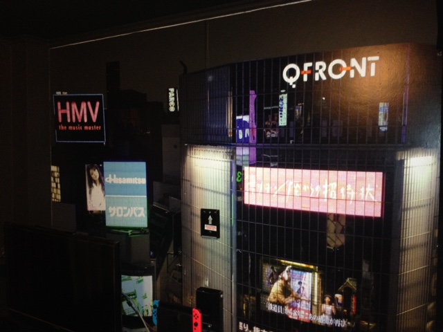 Lo primero era quitar una repisa de color rojo oscuro (un tanto molesta, la verdad) y quitar el papel mural. Era verano de 2014 y lo que no pude despegar jalándolo con la mano, lo hice con una mezcla de agua caliente y lavaloza, una esponja, y en algunos casos, con una plancha por encima para vencer el pegamento. Luego, emparejar los muros con pasta, colocar la gigantografía de Shibuya para el muro norte, pintar el cielo y los muros restantes de negro, colocar las repisas y los cartones para los posters sobre la puerta de la repisa (otro cacho fue pintar esas puertas).