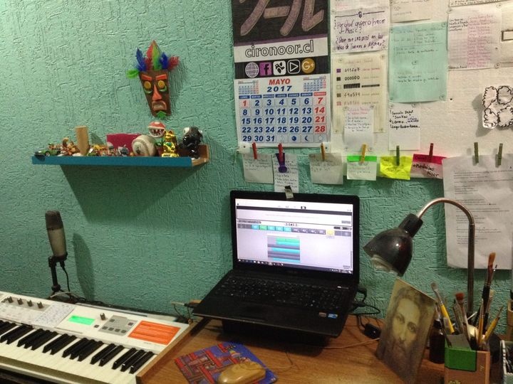 Es cierto: fue frustrante mi experiencia estudiando Producción Musical, pero mi sueño estaba intacto, y no quería renunciar a eso. Mi acercamiento a la geekeria potenció mi lado musical. No me deshice de mi teclado MIDI, ni de mi pedestal ni de mi micrófono. Entonces decidí perseguir mi sueño musical basándome en la geekeria. Con el teclado MIDI preparé las primeras pista y grabé los videos para abrir mi canal. En esa habitación realicé mi primer cover de japonés y grabé mi primer tema anisong. El inicio de Ciro Noor como proyecto tuvo lugar es esa habitación, ya que la convertí en mi primer Laboratorio de Música, con mi teclado, mi notebook, mi atril y mi micrófono.