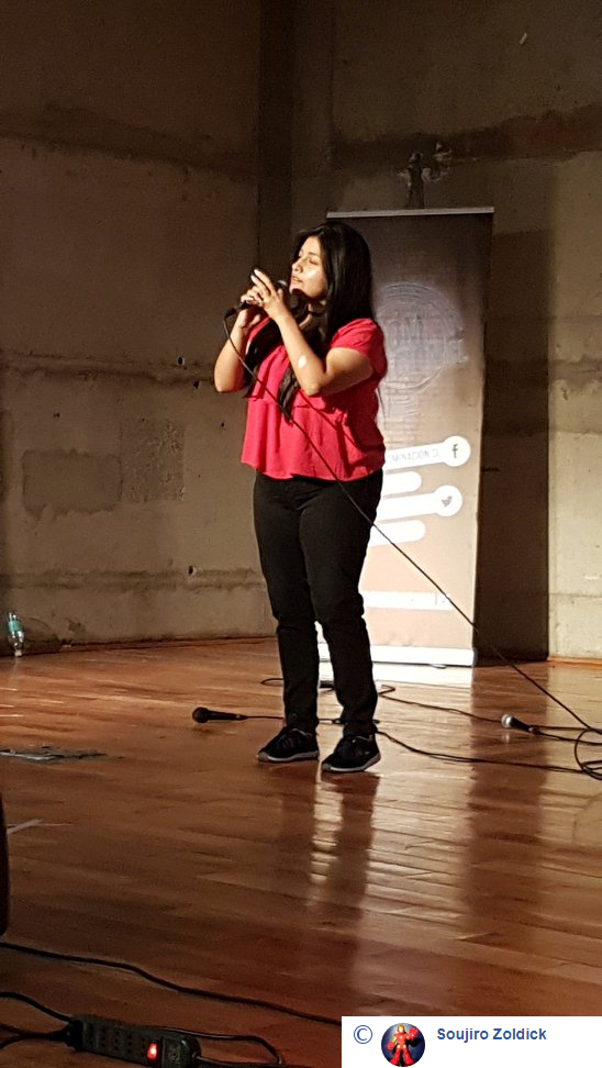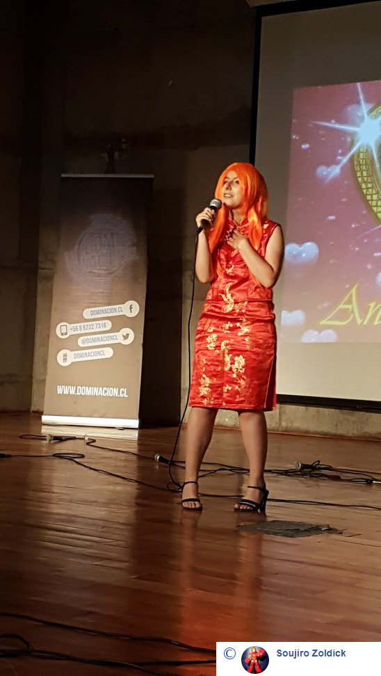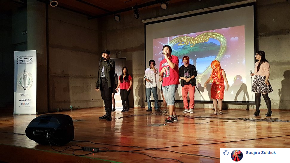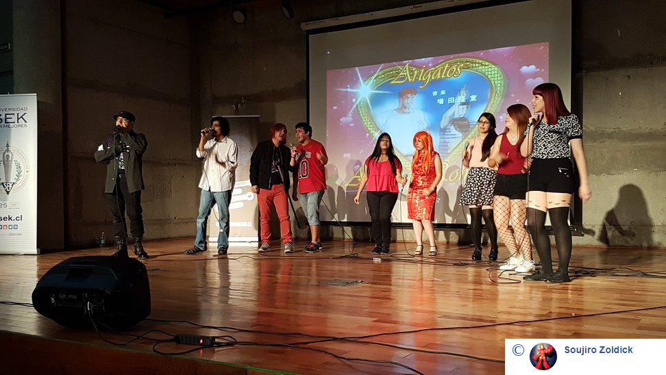 Nadia salió a escena con mucha dulzura, candidez, y un notable uso de la voz y la presencia con la versión latina de Romantiku Ageru Yo, de Dragon Ball. Fue recompensada por el público, al igual que Javi, quien subió para cantar un tema de Samurai X, No Jonjou No Kanjou con mucha potencia, dominio de escena y clase. Esa clase que tambien tuvo DaniBrú para cantar Kuchizuke Diamond, de Yamada-kun to 7-nin no Majo frente a un público que la premió como se merecía. Y cerró los sencillos Conitos, cantando Itazura Na Kiss en versión latina, con mucha técnica y dominio del plató. El público cerró con su gratitud los sencillos, antes del grupal de término: Quiero Gritar que te amo, apertura latina de Slam Dunk, que fue coreada y ovacionada por la gente que llegó en gran número al debut.
