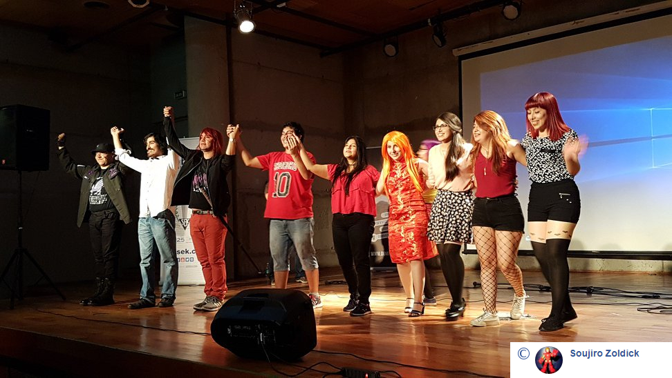 El show inicio con bastante retraso -cerca de las 13:00 y no a las 12:00 como se previó- pero eso no impidió que salieramos al tablado con el cuchillo entre los dientes. Dispuestos a matar. Fuimos presentados por nuestra maestra Lissette Chan y por Xiro. Subimos Nadia, Vannia, Mari, Isanami, Conitos, DaniBrú, Javi, Panxo y un servidor. Siempre pensando en el espectáculo, teniamos listo el repertorio: animé romántico. Durante ese día me olvidé de cuanto detestaba San Valentín.