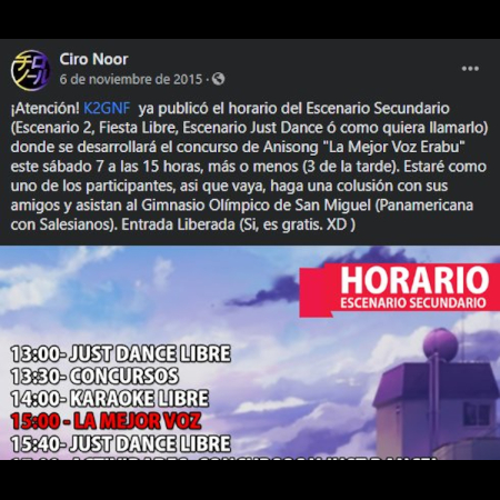Fue una gran noticia. Era mi tercera participación en un concurso de anisong, y la primera ocasión en la cual ganaba. Apenas me dieron la noticia, la publiqué en mi página de Facebook, y tomé una instantánea para reflejar mi alegría por la novedad.