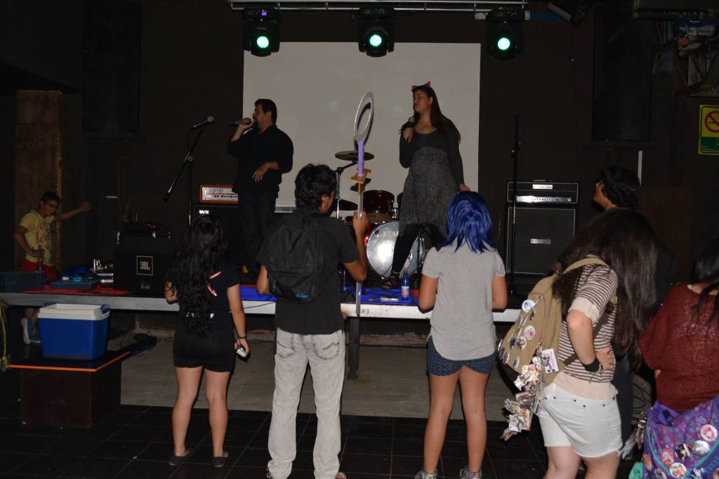Ya estaba en el lugar, era una pequeña discoteque con su primera sala que era un comedor de muros anaranjados con una cocina iluminados por las ventanas que daban a la calle. En ese momento hacía las veces de un maid café. Lo siguiente era el salón de baile propiamente tal que tenia dos pisos. En el primero estaba el escenario y la pista donde se ubicaba el público. A través de una escalera se accedía al segundo piso, que se estaba usando como sala de juegos de consolas, con juegos de pelea principalmente. Y bajando una vez más al primera, había un patio con un par de tiendas típicas de eventos de animé: dulces, bebidas, autoadhesivos y figuras de acción. En todos los sectores había gente: parroquianos en el café, público y una banda sonando en el escenario, gamers en el 2do piso y más público con cosplayers en el patio.