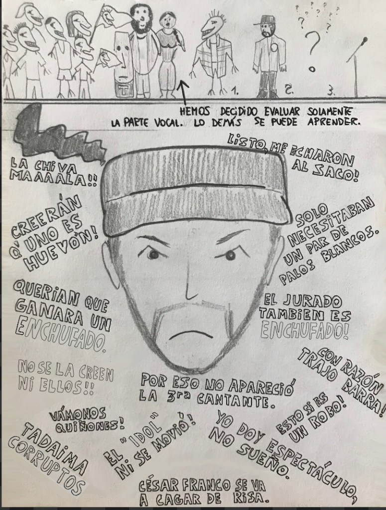 Llegó mi turno. Empezó a sonar la música e hice todo lo que planeé. Estuve afinadito, movedizo, haciendo participar al público con palmas y gritos rítmicos, además de involucrarlo en la parte de las repeticiones corales del “Medley de Los Supercampeones”. En la parte que yo pedía palmas, en el jurado la cantante de la banda anisong hizo un doble tempo de palmas que me extrañó, pero no me impidió continuar mi interpretación. Me gané al público y estaba cantando entusiasmado y mejor. Se acabó la música, agradecí y bajé. El público me recompensó con un aplauso mientras el animador me despedía. Había quedado contento: era mi mejor interpretación de anisong hasta el momento y la había dado al evento algo que los demás participantes quizá no podrían darle. Ojalá el jurado se fijase.
