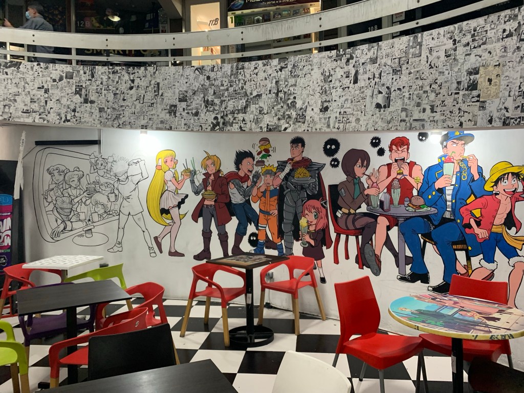 La última semana de noviembre de 2022 estaba ocupado con el vitrineo y las compras para la Navidad. Tenía tiempo para esto sólo después de mi jornada de trabajo, y decidí acudir a los centros comerciales. El Portal Lyon, primero, y luego a Dos Caracoles. Ambos ubicados en esquinas paralelas de Nueva de Lyon con Avenida Providencia. En Dos Caracoles estaba paseándome entre los pasillos con pendiente viendo las distintas vitrinas de las tiendas. Todas tenían tópicos parecidos: manga, comic, figuras de acción, estatuas, videojuegos, juguetes y juegos, poleras y cosplay, etc. Todas cosas que me interesan bastante en mi etapa actual, más otaku. Pero además me encontré con una cafetería geek en la planta baja del Caracol Norte. Sin embargo, como estaban muy cerca de la hora de cierre, decidí que pasaría al día siguiente.