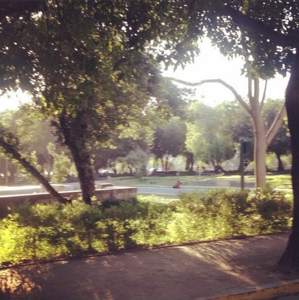 El día 13, luego de cumplir mi función laboral en la oficina, inicié mi marcha hacia el Barrio Lastarria, lugar del transmisor del espacio, la Radio Dominación. Pero antes, decidí no acudir con las manos vacías. Por lo tanto, compré un pan de pascua en Castaño para mi gente de Kuchizuke.net. De ahí, caminé desde Providencia pasando cerca del Café Literario y aproveché de tomar mi primera foto para Instagram, una vista del parque Balmaceda. Luego, tomé el metro en Baquedano y me bajé en Bellas Artes. No quería hacer todo el viaje a pie para no llegar sudado.