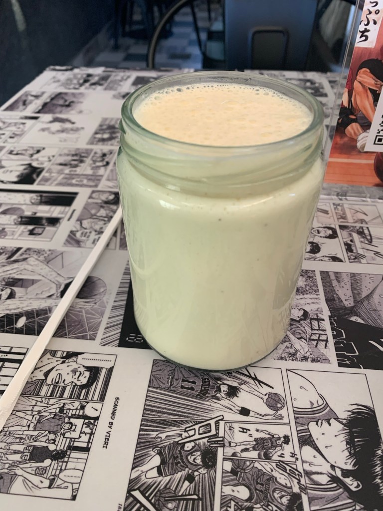 Luego, la mesera volvió con el pedido. El taiyaki estaba esponjoso y dulce. El helado y la fruta aportaban el dulzor y frescura necesarios para afrontar la época. Y la leche con plátano estaba dulce, fresca, agradable y sabrosa. Mientras escribo estas líneas, quiero volver a pedir la misma comanda. Se me hace agua la boca.
