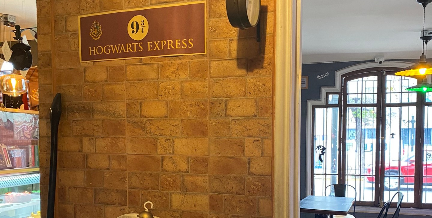 Dentro de mi apartado, una vez adentro, empecé a advertir las pinturas artísticas de los muros, los letreros vinculados a ala franquicia, algunos frascos que simulaban posiciones mágicas, un cuadro con monedas, y las banderas de las cuatro casas de Hogwarts. Efectivamente, el café estaba inspirado en el universo literario de Harry Potter. Tome algunas imágenes y empecé a observar, fascinado, mi alrededor. No tenía idea de qué un lugar así podía existir en Providencia. Y ahora estaba dentro de él, viviendo en medio de esa magia. En un café de Hogwarts sin salir de Provi, huyendo del frío de esa domingo nublado.