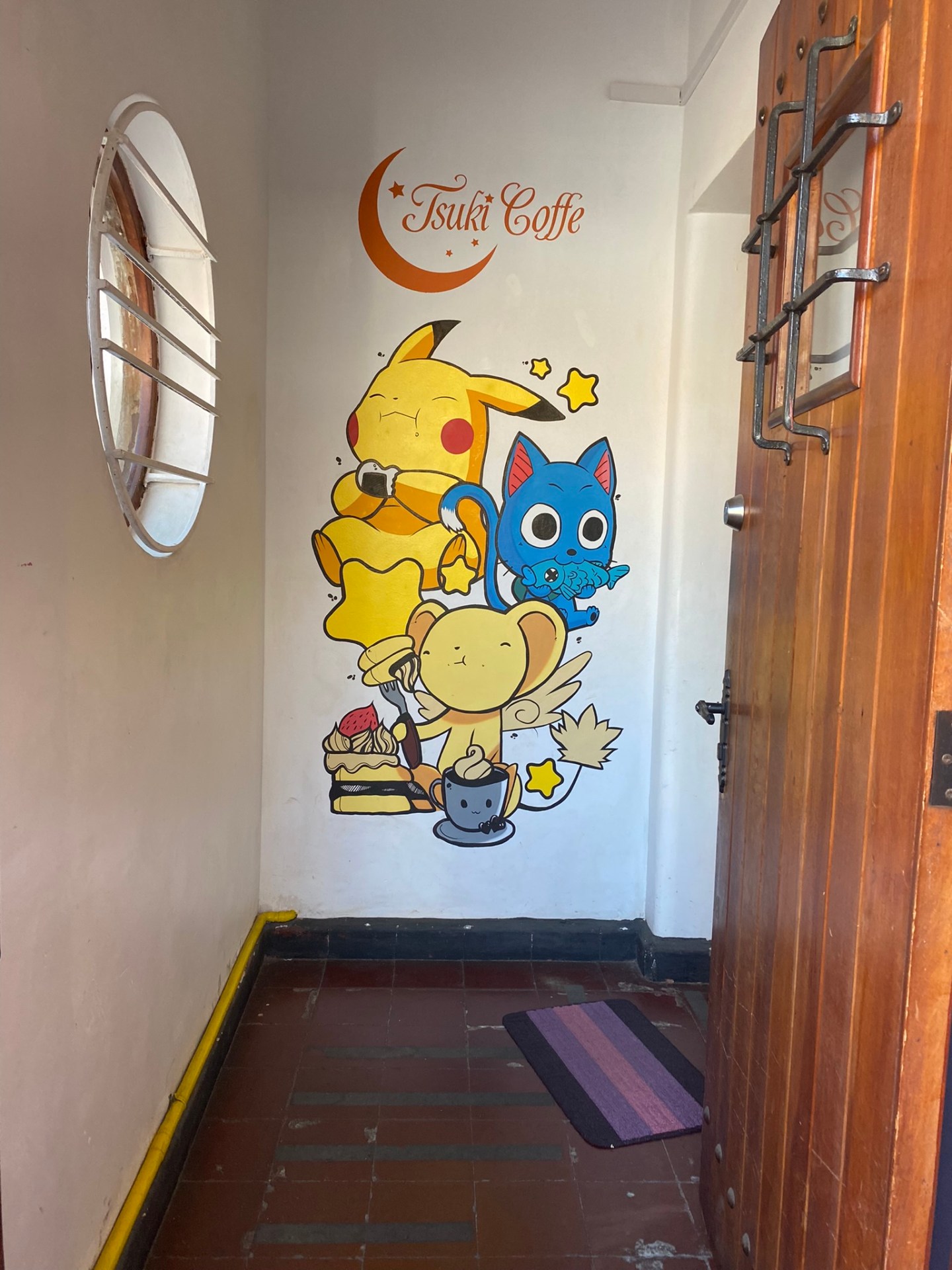 Estaba enrejada de color blanco la casona, con su reja abierta. El piso de madera estaba situado sobre lo que era el porche de la casona. De ahí el umbral de entrada dejaba entrever el primer diseño decorativo de animé y el nombre del local. Una vez adentro, el pasillo lleva a dos salas contiguas, en las cuales habían muros blancos que estaban pintados con diseños de Dragon Ball, Sailor Moon, One Piece. En la primera habían sillas con sus mesas sobre un piso de madera, y en la de fondo estaba la caja y un aparador refrigerado mostrando piezas de repostería, además de un frigobar iluminado con latas de bebida dentro.