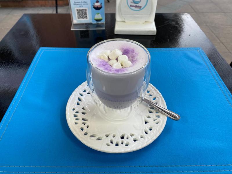 Y además disponen de pastelería, tetería, jugos y bebidas lácteas calientes. Una muestra de ello es el Taro Purple Milk. Lo pedí por el color púrpura (color oficial del proyecto) y la recomendación del garzón. Es una bebida láctea servida caliente con sabor de raíz de taro, leche condensada y espuma de leche. El sabor es bien parecido al cereal Trix. Bastante dulce y sabrosa la sugerencia. Y a mis favoritos personales.